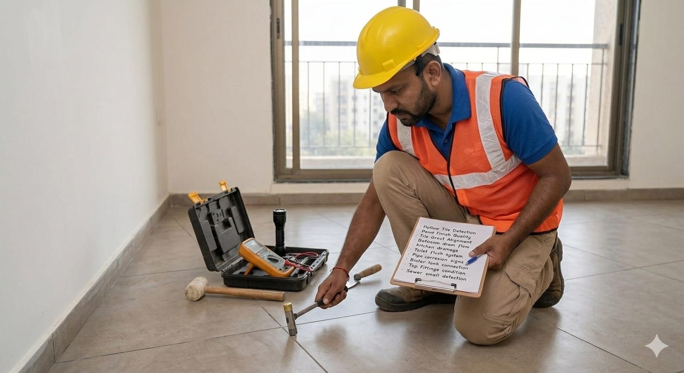 Buying a flat without proper inspection can hide defects like water leakage, structural cracks and plumbing problems. A professional inspection helps detect these issues before purchase.